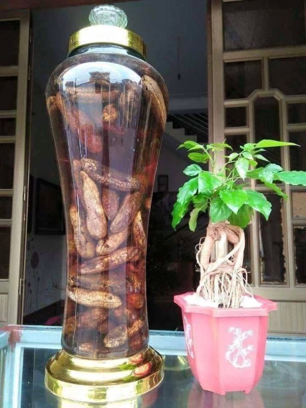- Bước 3: Sau khoảng 1 tuần, tiến hành đổ rượu trắng vào và ngâm tiếp 1 tháng thì có thể mang ra sử dụng. Rượu ngâm càng lâu thì mùi vị càng đậm đà và thơm.