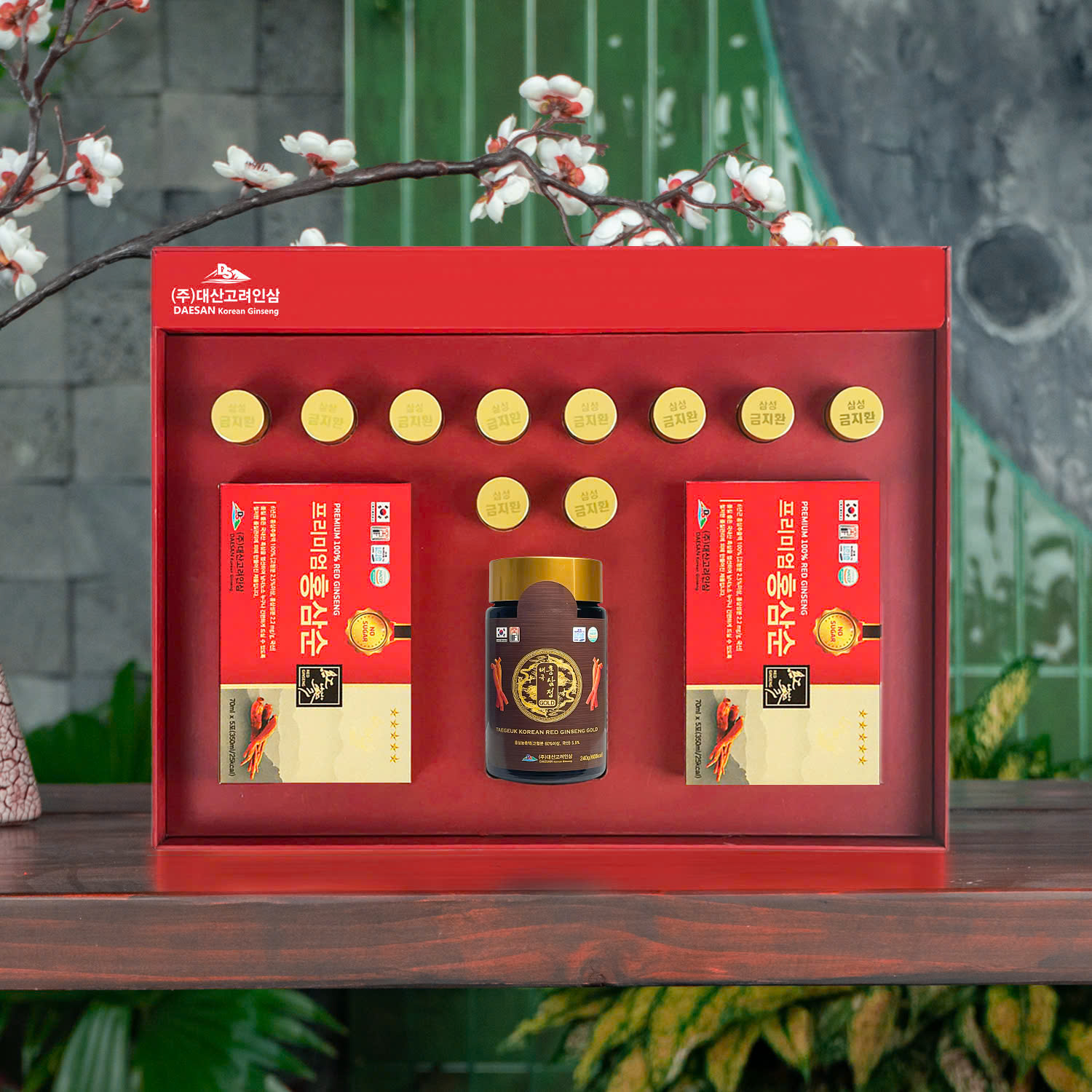 Nước Hồng Sâm Không Đường Daesan, Cao Hồng Sâm Thái Cực và Thảo Dược Hàn Quốc trong bộ quà mang đến một trải nghiệm chăm sóc sức khỏe toàn diện theo phong cách Hàn Quốc, phù hợp với người trưởng thành, người lớn tuổi hay những người thường xuyên chịu áp lực công việc.
