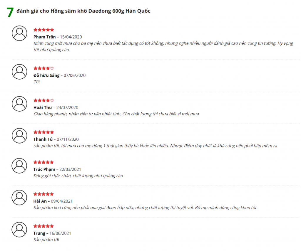 Đánh giá của người dùng về sâm sấy khô Hàn Quốc
