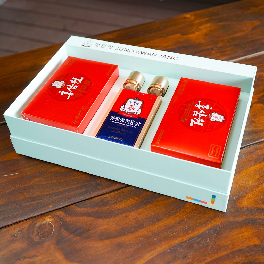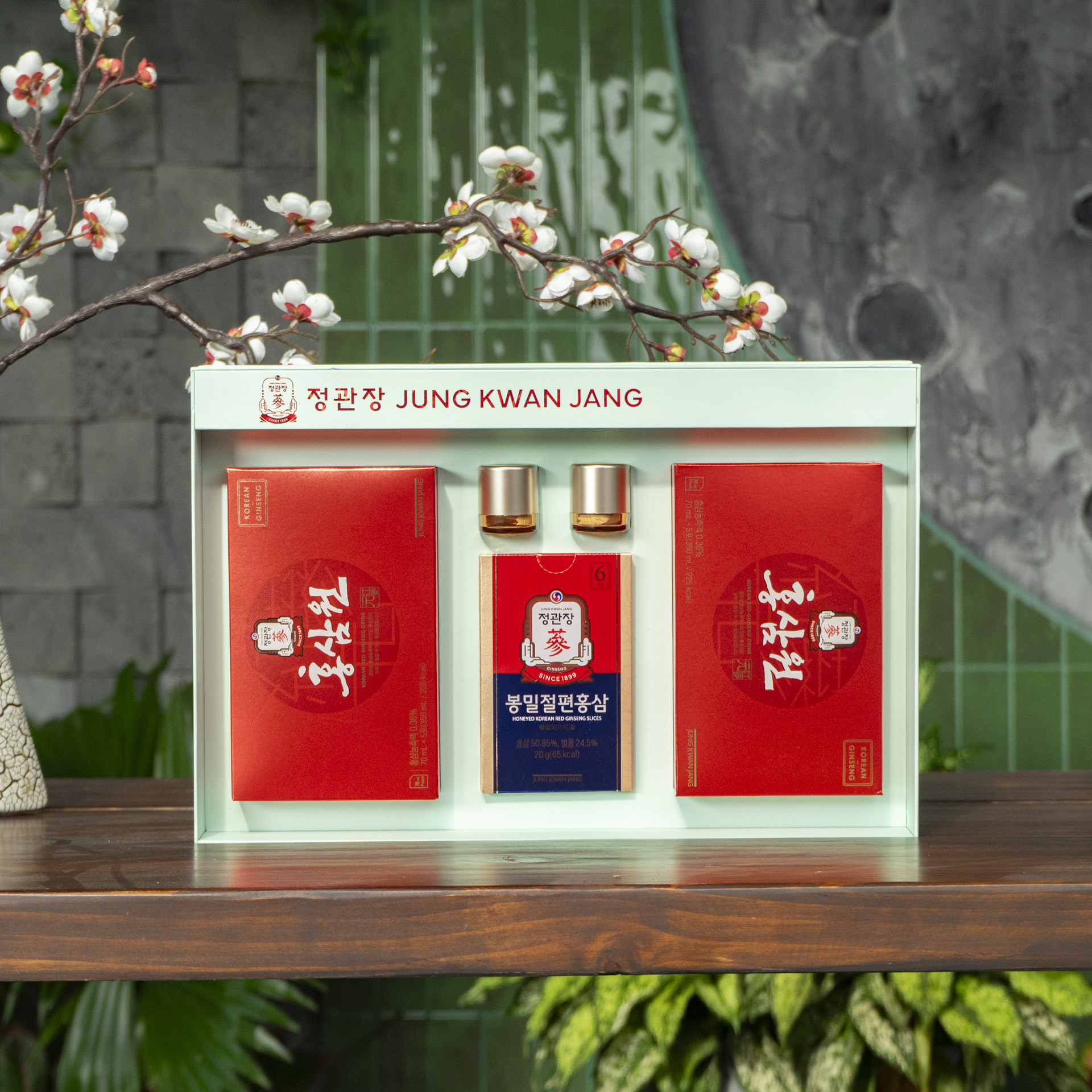Bộ quà tặng hồng sâm cao cấp Jung Kwan Jang – Thuận Phong Vạn Lý là bộ hộp quà tặng hồng sâm cao cấp đến từ thương hiệu quốc dân KGC Jung Kwan Jang – Hàn Quốc, biểu trưng lời chúc tinh tế mọi điều hanh thông, sức khoẻ vững vàng.