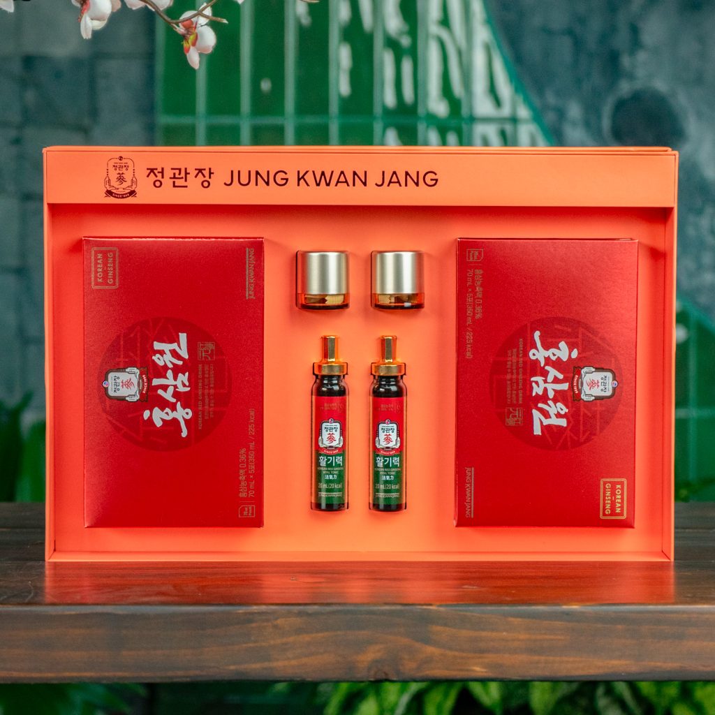 Sự kết hợp tinh túy giữa hồng sâm Hàn Quốc và các dưỡng chất quý mang đến cho cơ thể nguồn năng lượng dồi dào, hỗ trợ chăm sóc sức khỏe toàn diện từ bên trong.