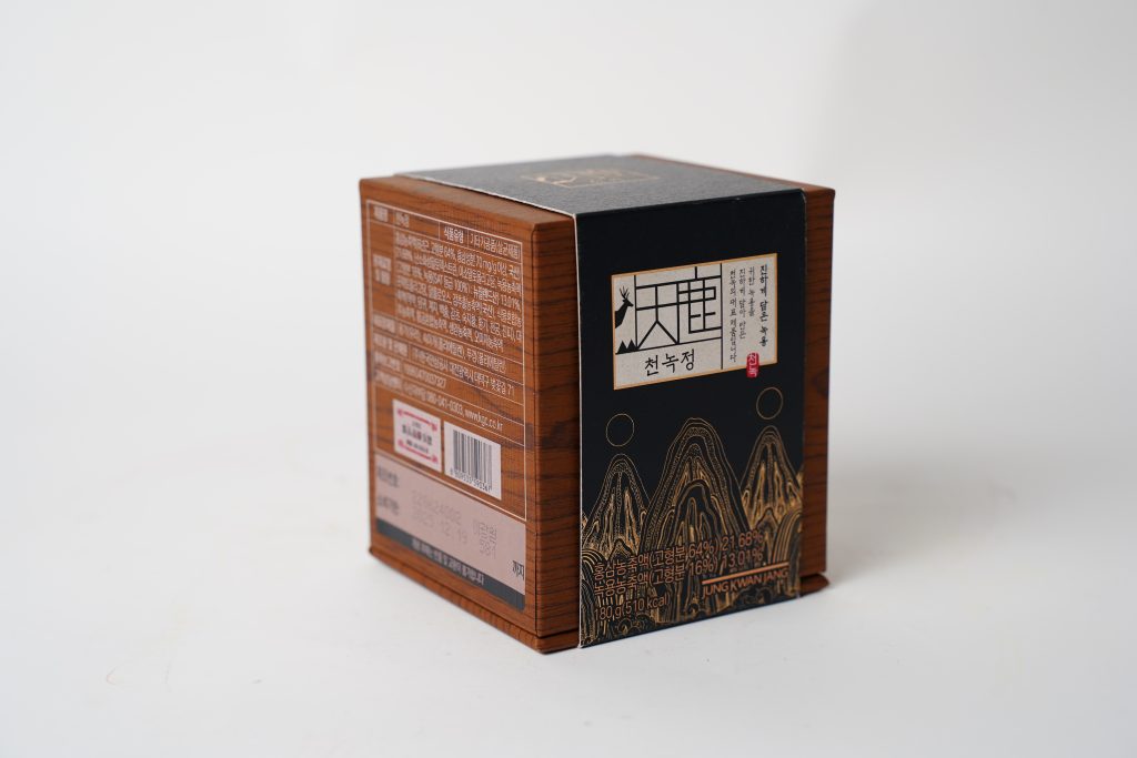 Cao hồng sâm nhung hươu hộp gỗ 180g là sản phẩm được sản xuất bởi tập đoàn nhân sâm chính phủ Hàn Quốc Jung Kwan Jang. Khác biệt với các thương hiệu hồng sâm khác, Jung Kwan Jang được xem là thương hiệu danh tiếng bậc nhất có bề dày gắn kết lịch sử và truyền thống của chính phủ Hàn Quốc trên 100 năm.