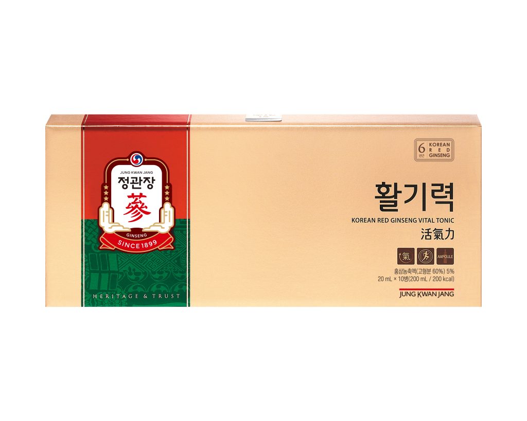Nước hồng sâm Hwal Gi Ruk là sản phẩm thuộc thương hiệu Jung Kwan Jang (KGC) – Được chiết xuất từ hồng sâm Hàn Quốc 6 năm tuổi kết hợp cùng các thảo dược quý, mang lại nguồn dinh dưỡng lành mạnh, giúp hỗ trợ bồi bổ cơ thể, tăng cường sức đề kháng, cải thiện sự tỉnh táo, tinh thần thoải mái trong công việc và cuộc sống