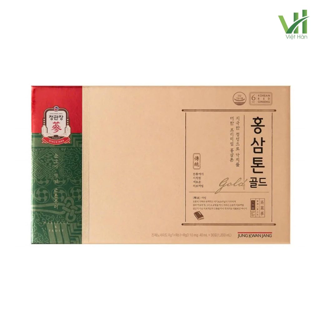 Nước hồng sâm Tonic Gold chính phủ KGC Tinh hoa chính phẩm từ KGC Chính phủ Hàn Quốc Được sản xuất bởi KGC – thương hiệu nhân sâm hàng đầu trực thuộc chính phủ Hàn Quốc, Nước Hồng Sâm Tonic Gold là sự kết hợp hoàn hảo giữa tinh chất Hồng Sâm 6 năm tuổi và các thảo dược quý, giúp hỗ trợ bồi bổ thể lực, tăng cường sức đề kháng, và phục hồi sinh lực tự nhiên cho cơ thể.